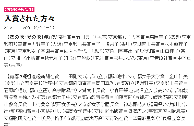 産経新聞に出てたが、神志那ちゃん短歌で
